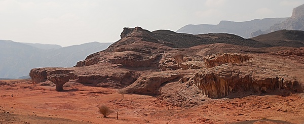 По мере приближения к территории самого парка скалы приобретают всё более ярко выраженный красный оттенок – признак присутствия меди в горных породах. Интересно, на самом деле, сравнивать такой необычный переход цвета в пейзажах за окном: на территории кратера Рамон преобладал жёлтый оттенок, в Тимне – чуть больше красного, в Петре, уже на территории Иордании, - некоторые скалы будут иметь ещё более ярко выраженный красный цвет.