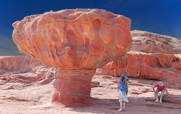 Фантастическая скала, образованная вследствие эрозии красного песчаника. Поскольку эрозия нижних слоев протекала более быстро, сверху сформировалась «шляпа», по форме напоминающая большой гриб. Рядом находится центр для посетителей, в котором можно ознакомиться с историей поселения древних египетских шахтеров, некогда построенного у подножия скалы.